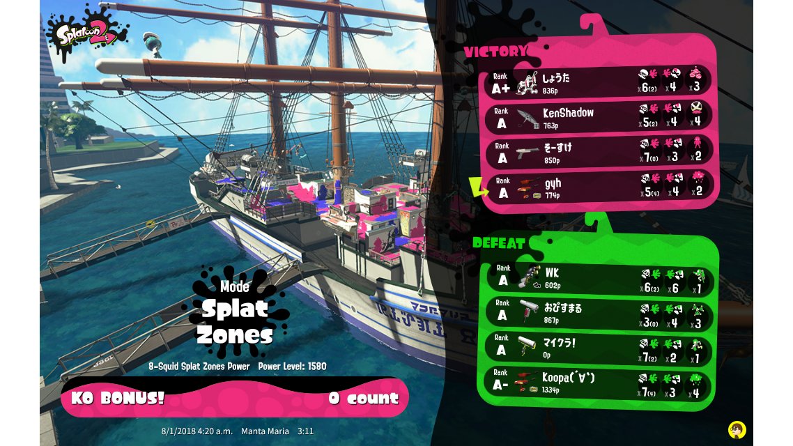 | Mode | Splat Zones - Ranked Battle | ||||||||||||||||||||||||||||||||||