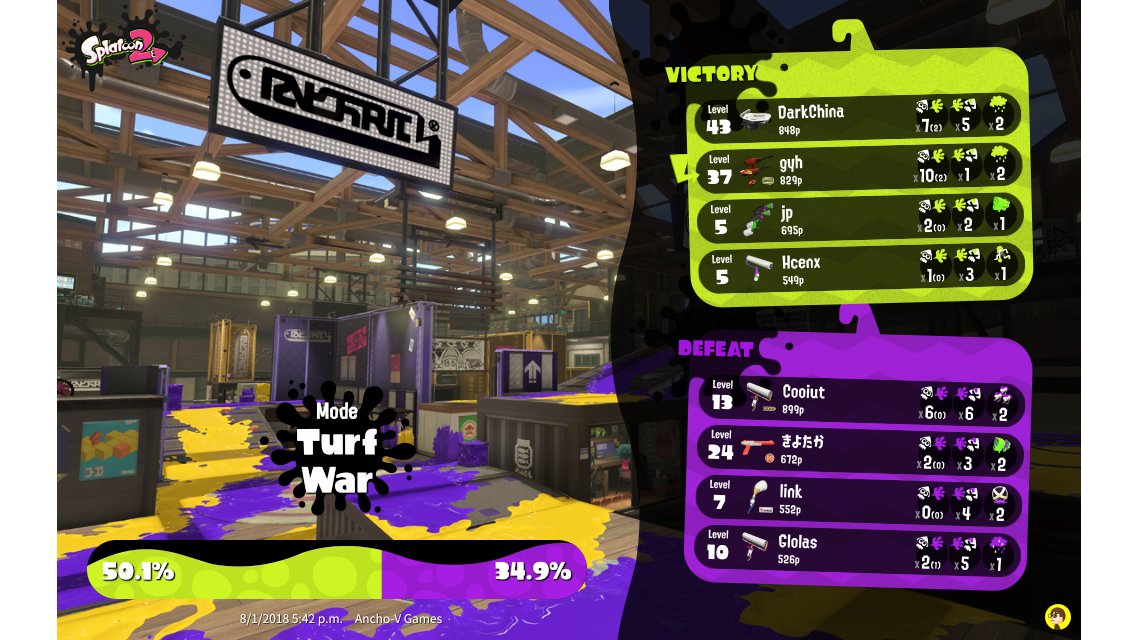 | Mode | Turf War - Regular Battle | ||||||||||||||||||||||||||||||||||||||||