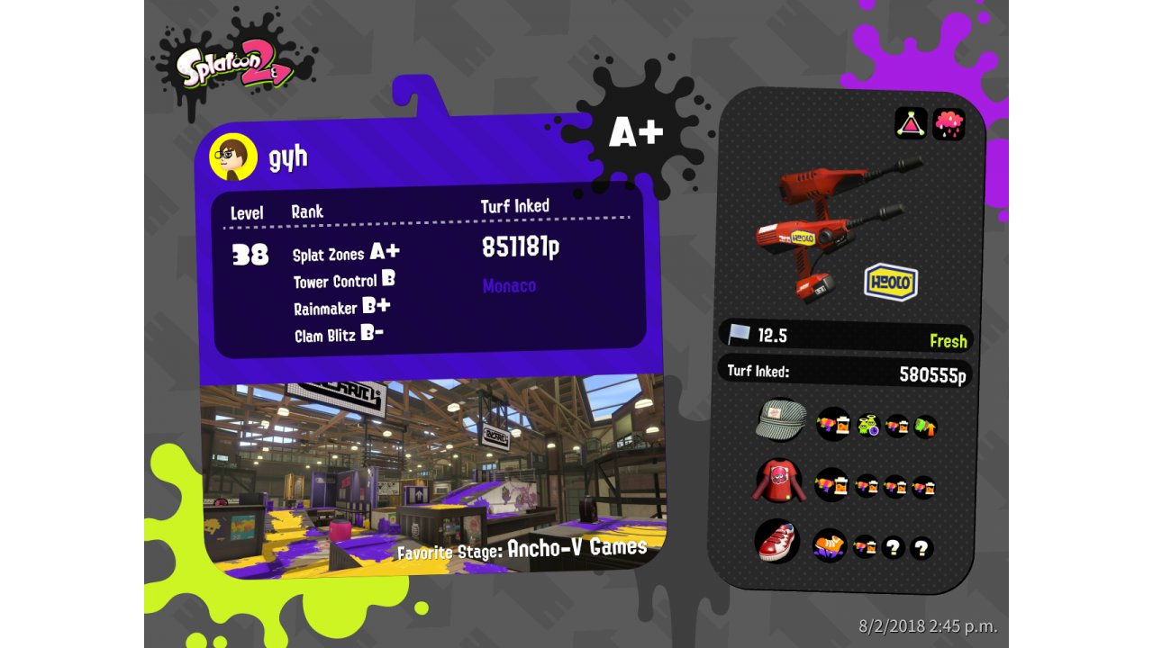 | Name | Weapon | Level | Rank | Inked | k+a/sp | k/d |