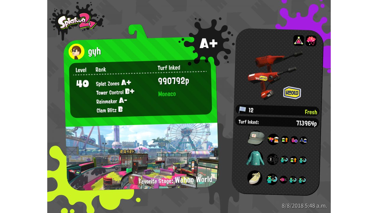 | Name | Weapon | Level | Rank | Inked | k+a/sp | k/d |