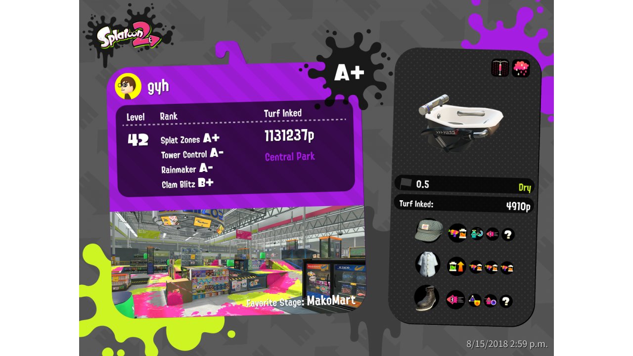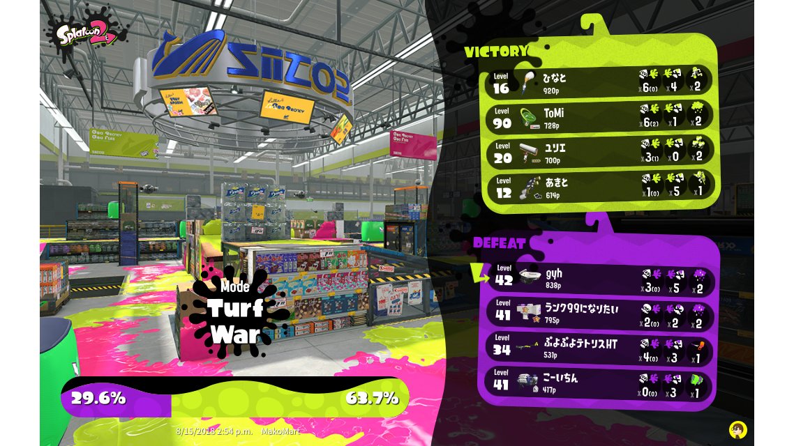 | Mode | Turf War - Regular Battle | |||||||||||||||||||||||||||||||||||||