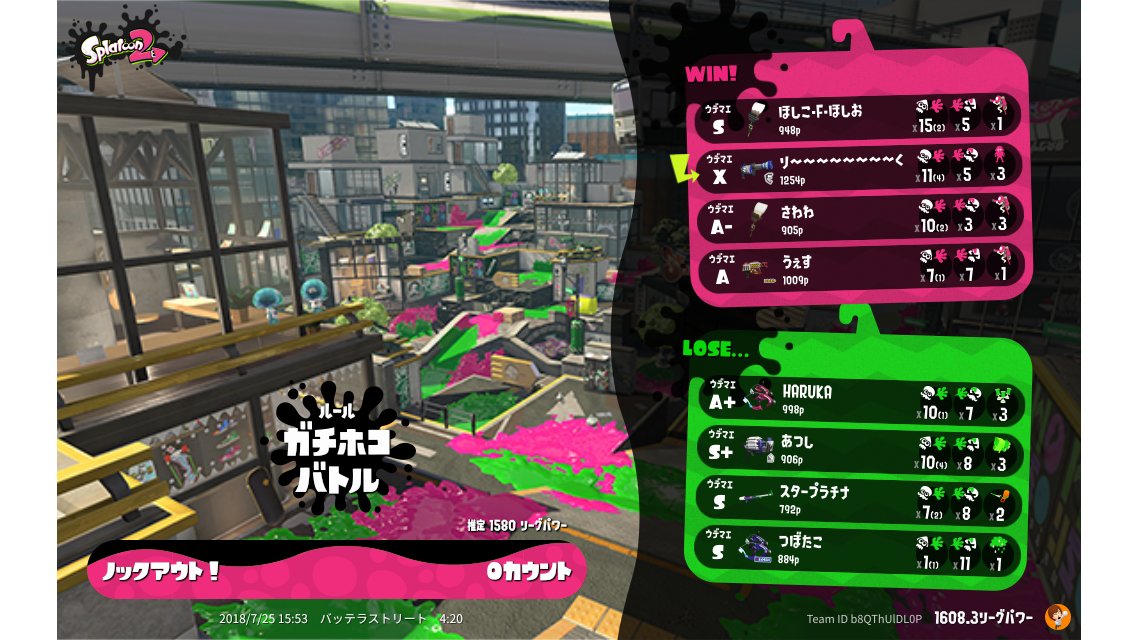 | Mode | Rainmaker - League Battle (Twin) | |||||||||||||||||||||||||||||||||||||