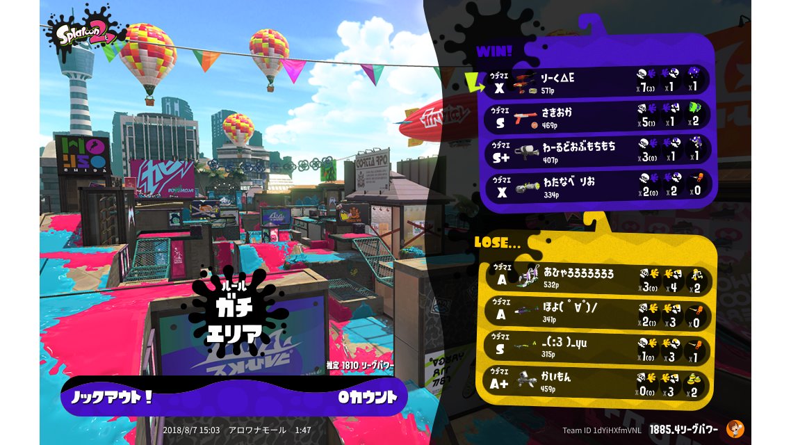 | Mode | Splat Zones - League Battle (Quad) | |||||||||||||||||||||||||||||||||||||