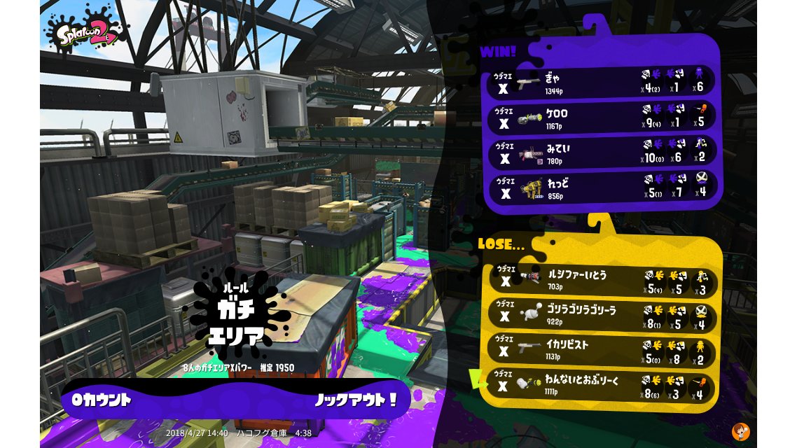 | Name | Weapon | Level | Rank | Inked | k+a/sp | k/d |