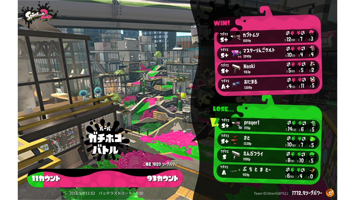 | Mode | Rainmaker - League Battle (Twin) | |||||||||||||||||||||||||||||||