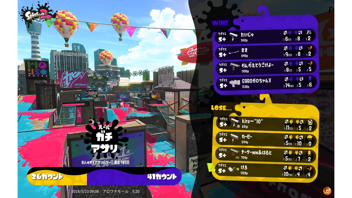 | Name | Weapon | Level | Rank | Inked | k+a/sp | k/d |