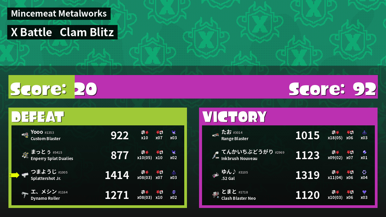 | Weapon | Splattershot Jr. ( Splat Bomb / Big Bubbler) | ||