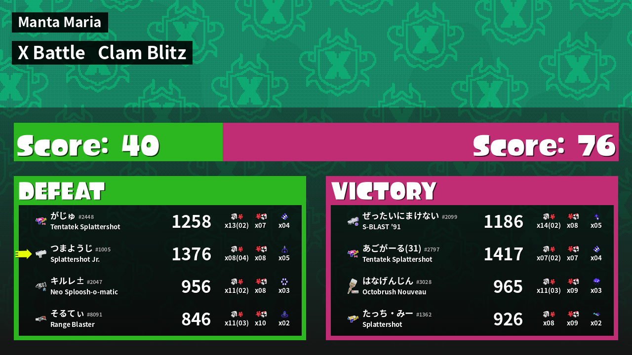 | Mode | Clam Blitz - X Battle | ||