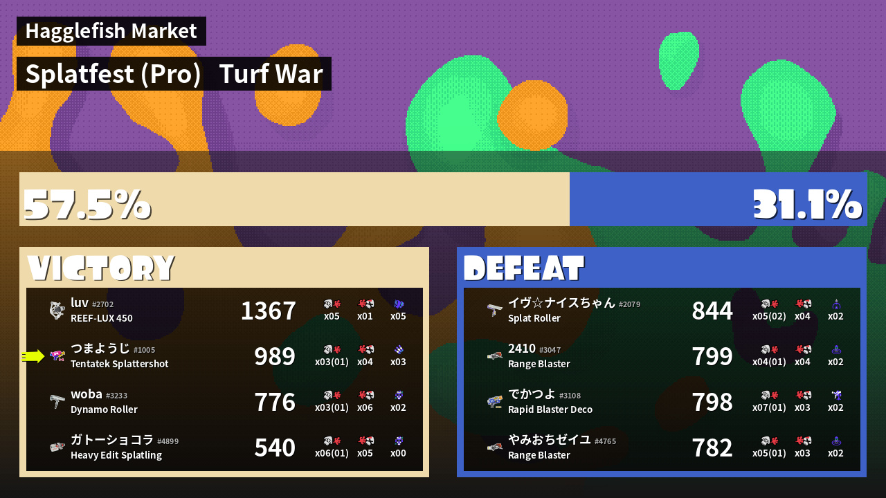 | Mode | Turf War - Splatfest (Pro) | ||