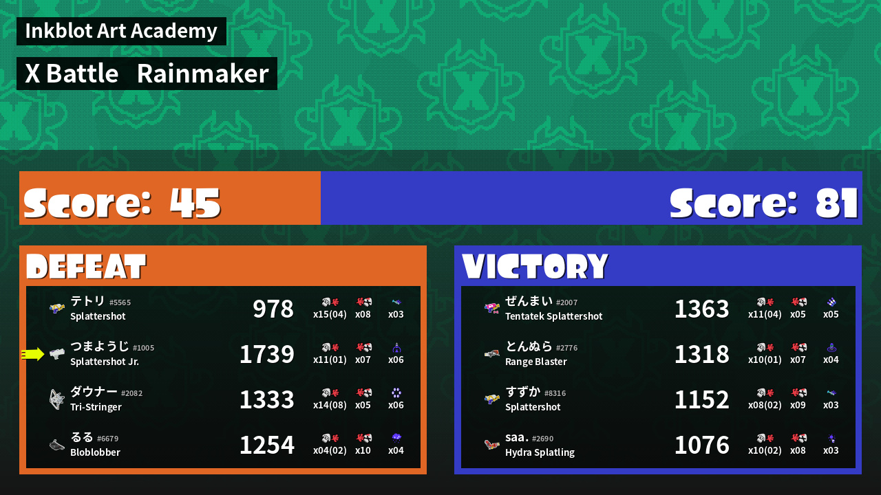 | Mode | Rainmaker - X Battle | ||