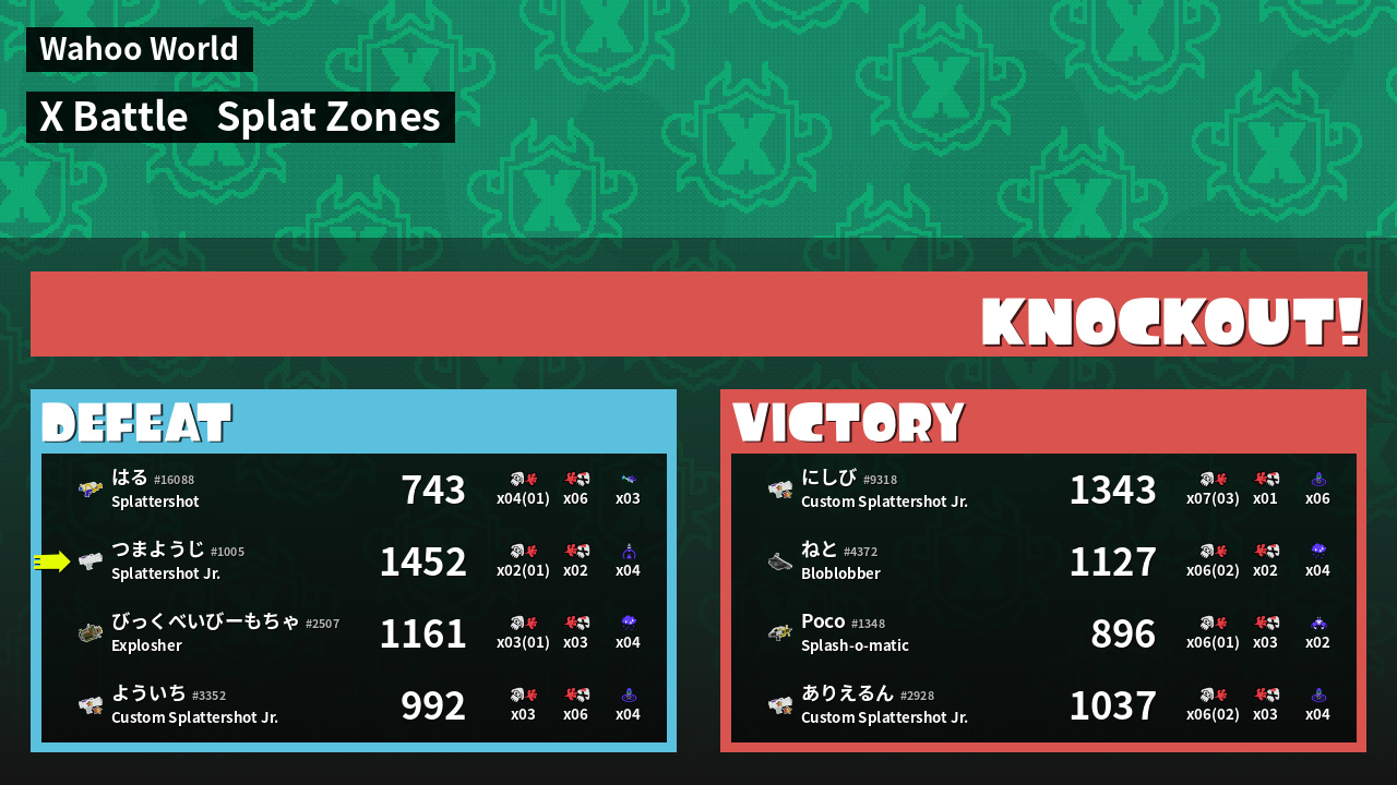 | Mode | Splat Zones - X Battle | ||