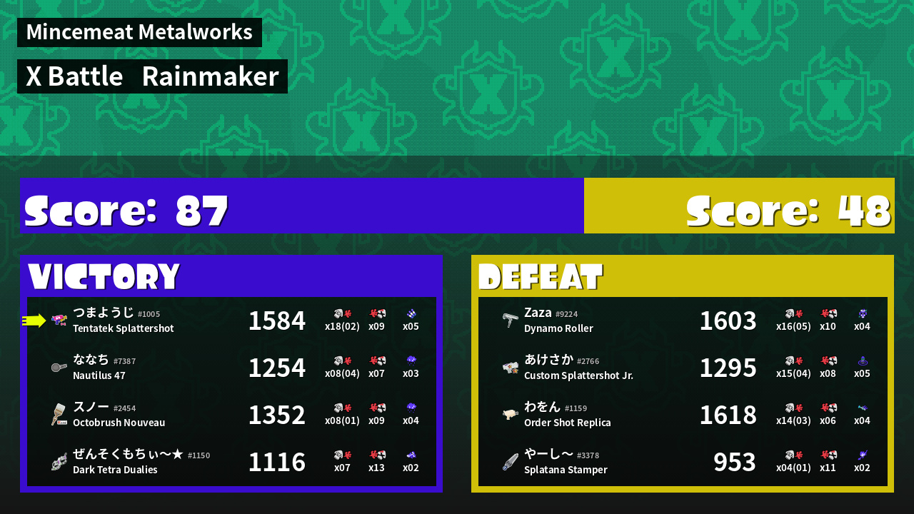 | Medals | #1 Overall Splatter #1 Turf Inker #1 Popular Target | ||