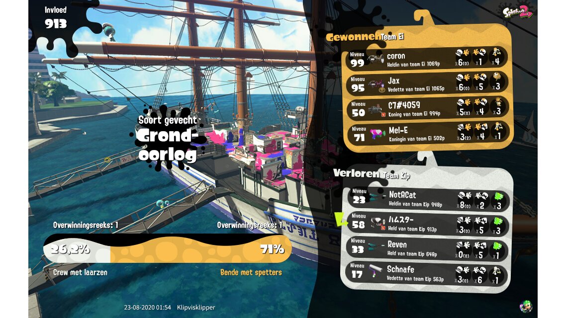 | Team Kip Crew met laarzen Win Streak: 1 | 3,072 | 14 / 18 | 0.78 43.75% | ||||