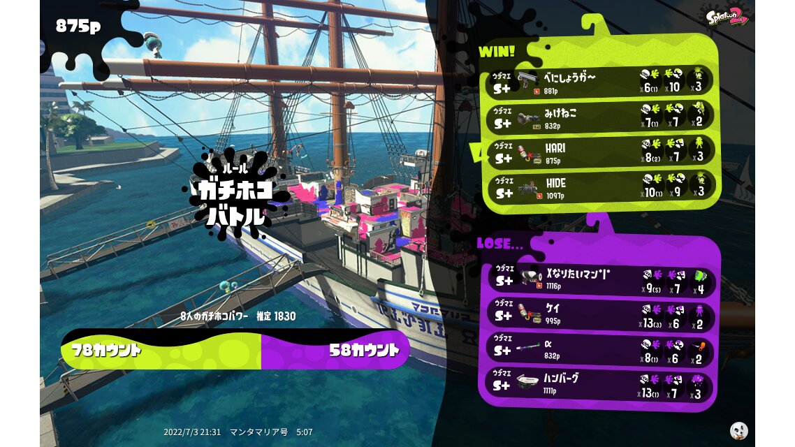 ★18 | S+ | 875 | 8 (2) / 3 | 6 / 7 | 0.86 46.15% | ||