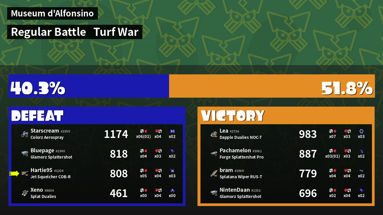 | Medals | #1 Enemy Splatter #1 Base Defender #1 Damage Taker | ||