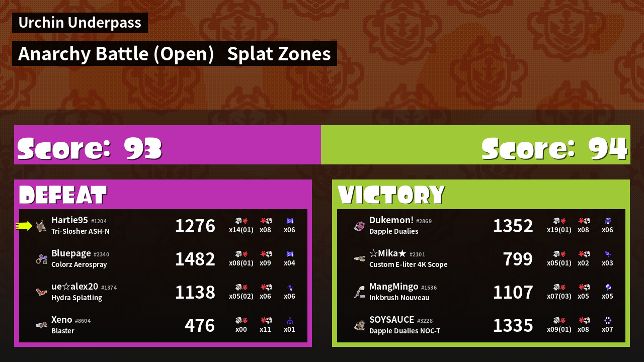 | Mode | Splat Zones - Anarchy Battle (Open) | ||
