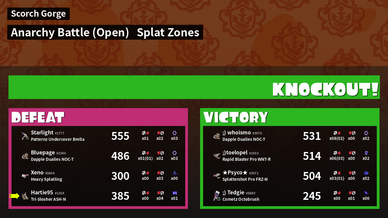 | Mode | Splat Zones - Anarchy Battle (Open) | ||