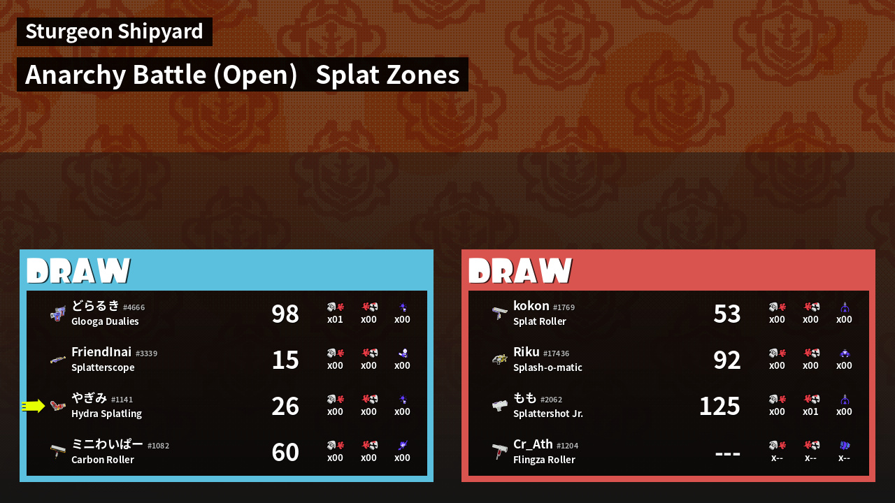 | Mode | Splat Zones - Anarchy Battle (Open) | ||