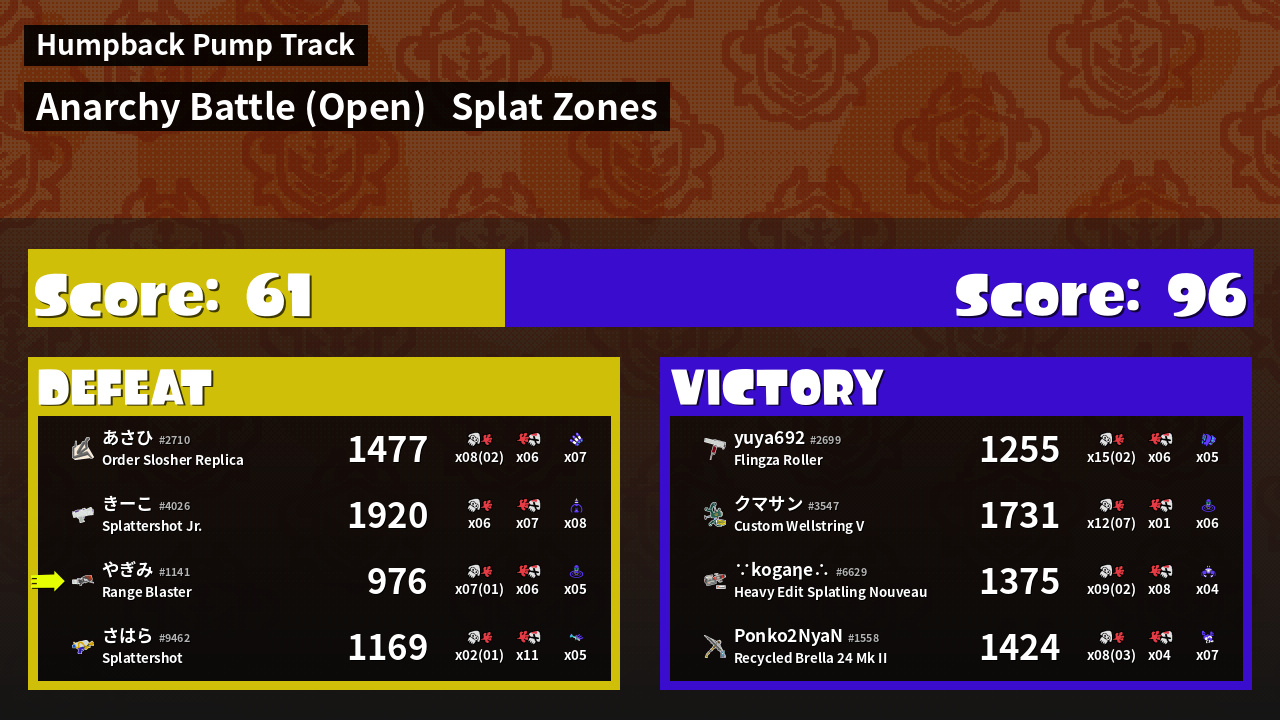 | Mode | Splat Zones - Anarchy Battle (Open) | ||