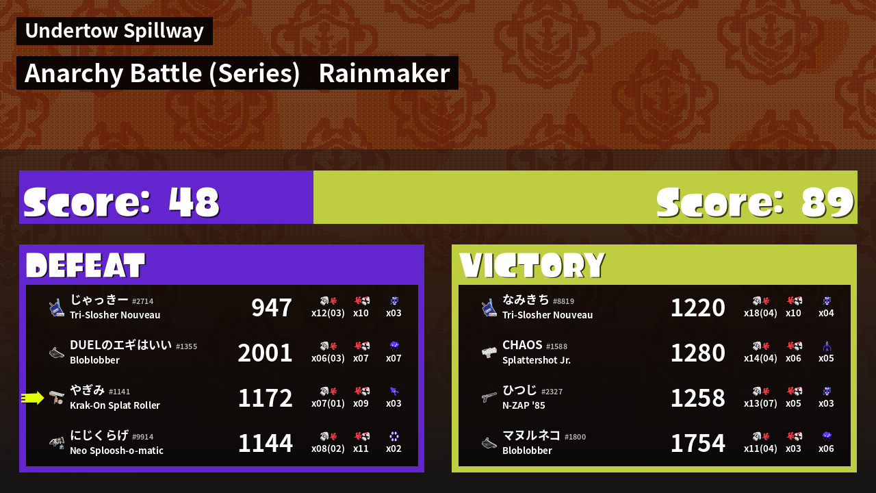 | Mode | Rainmaker - Anarchy Battle (Series) | ||