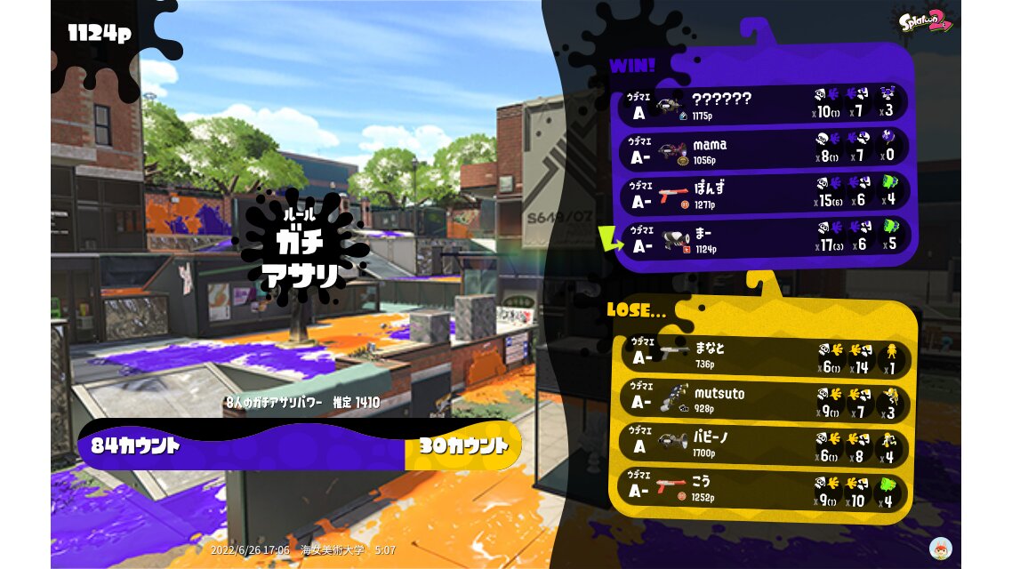 | Name | Weapon | Level | Rank | Inked | k+a/sp | k/d |