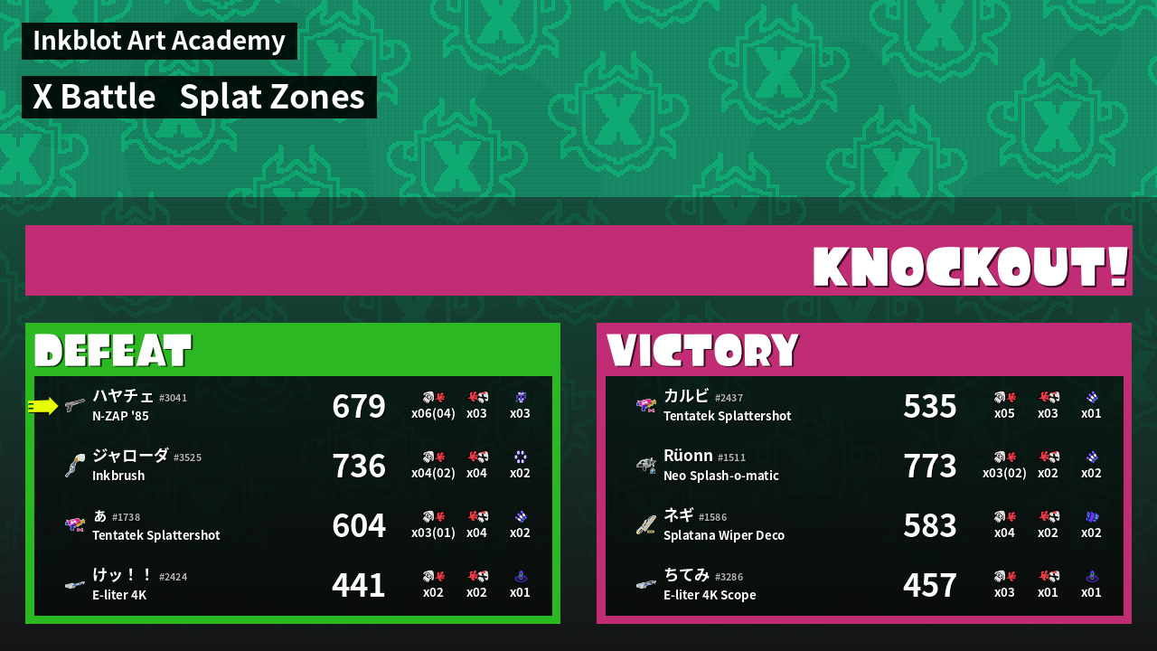 | Medals | #1 Overall Splatter #1 Splat Zone Guard #1 Enemy Splatter | ||