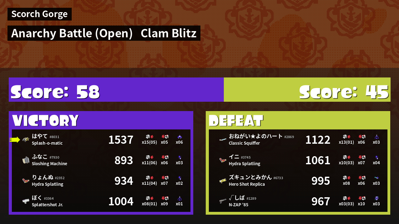 | Mode | Clam Blitz - Anarchy Battle (Open) | ||