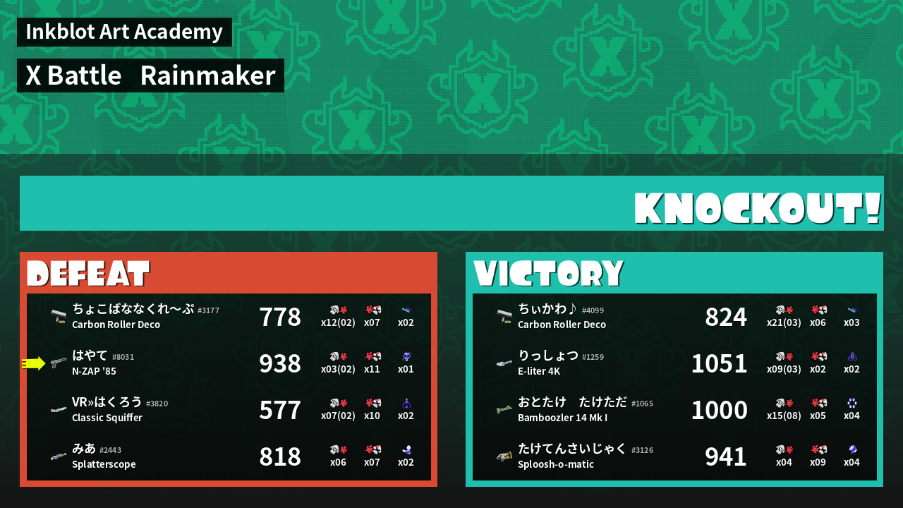 Name | Weapon | X | Inked | ![]() |