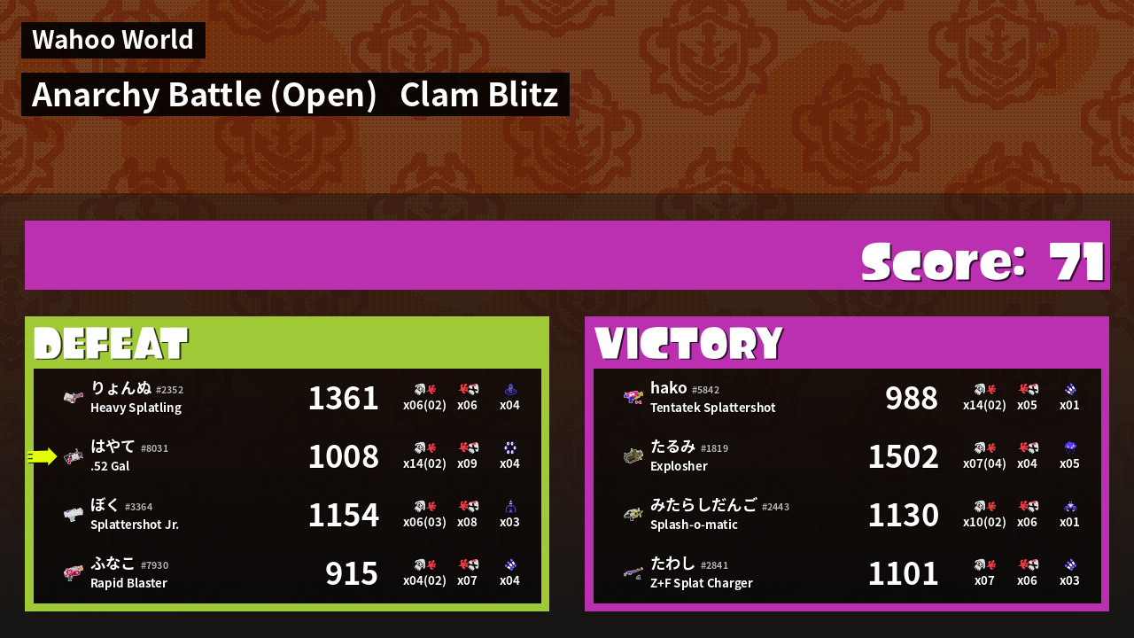 | Mode | Clam Blitz - Anarchy Battle (Open) | ||