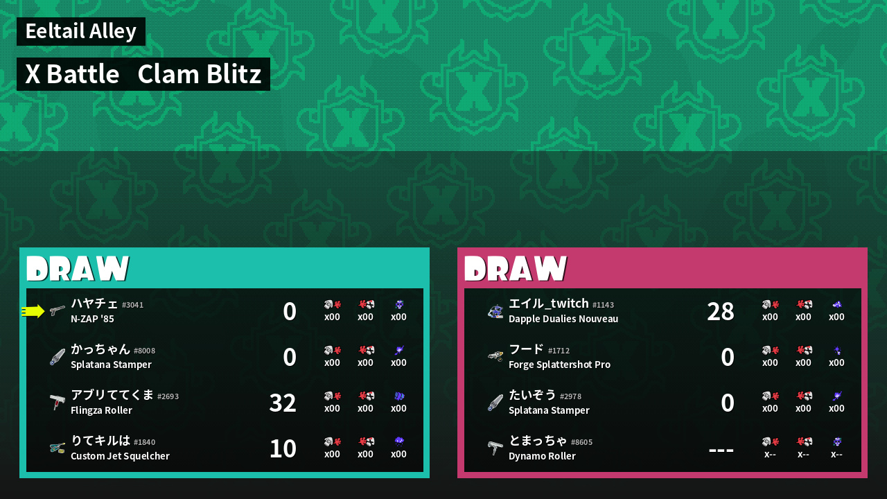 | Mode | Clam Blitz - X Battle | ||
