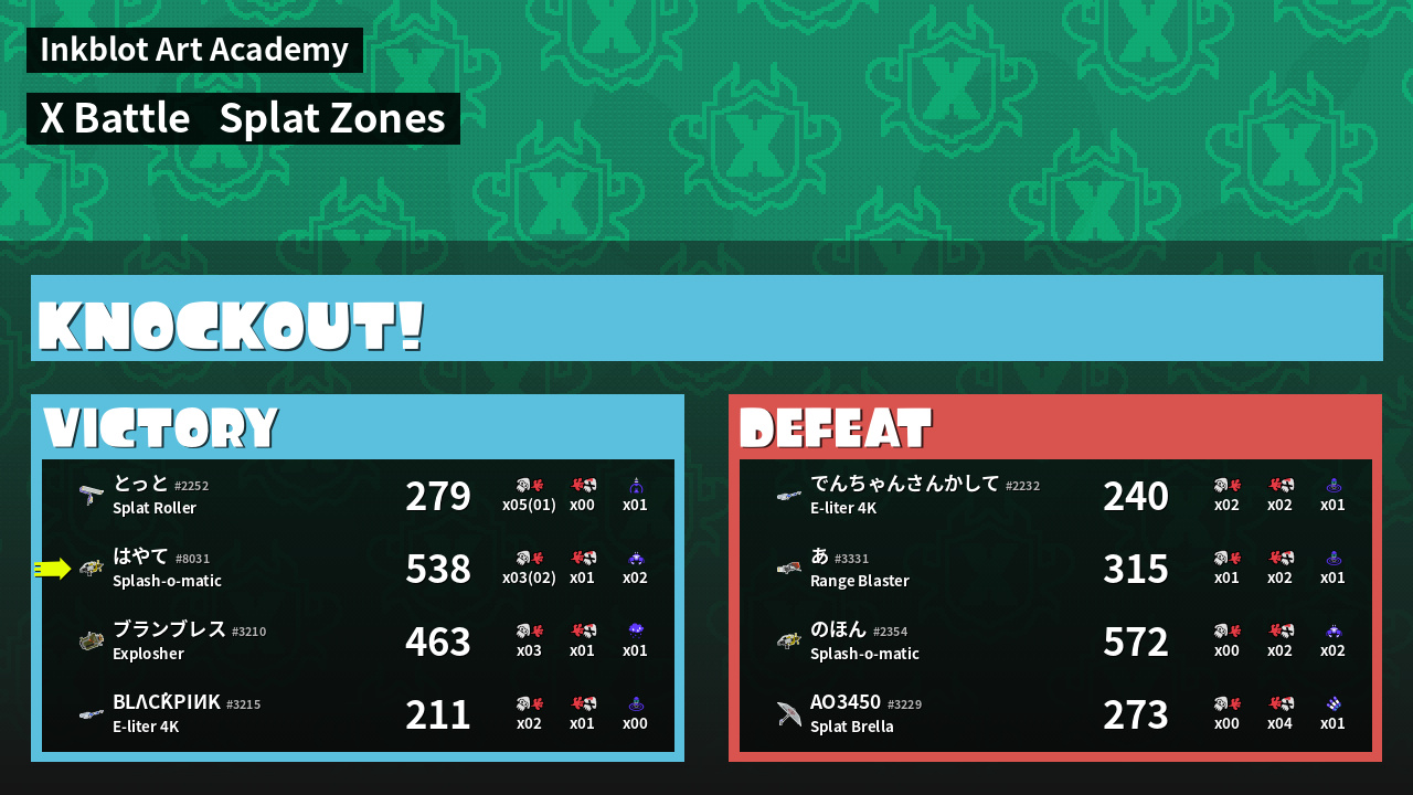 | Mode | Splat Zones - X Battle | ||