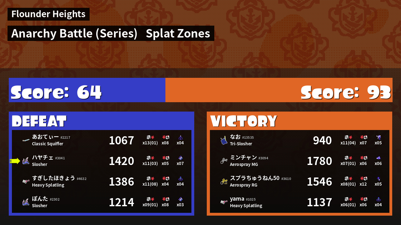 | Mode | Splat Zones - Anarchy Battle (Series) | ||