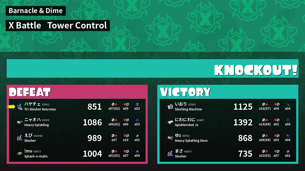| Weapon | Tri-Slosher Nouveau ( Fizzy Bomb / Tacticooler) | ||