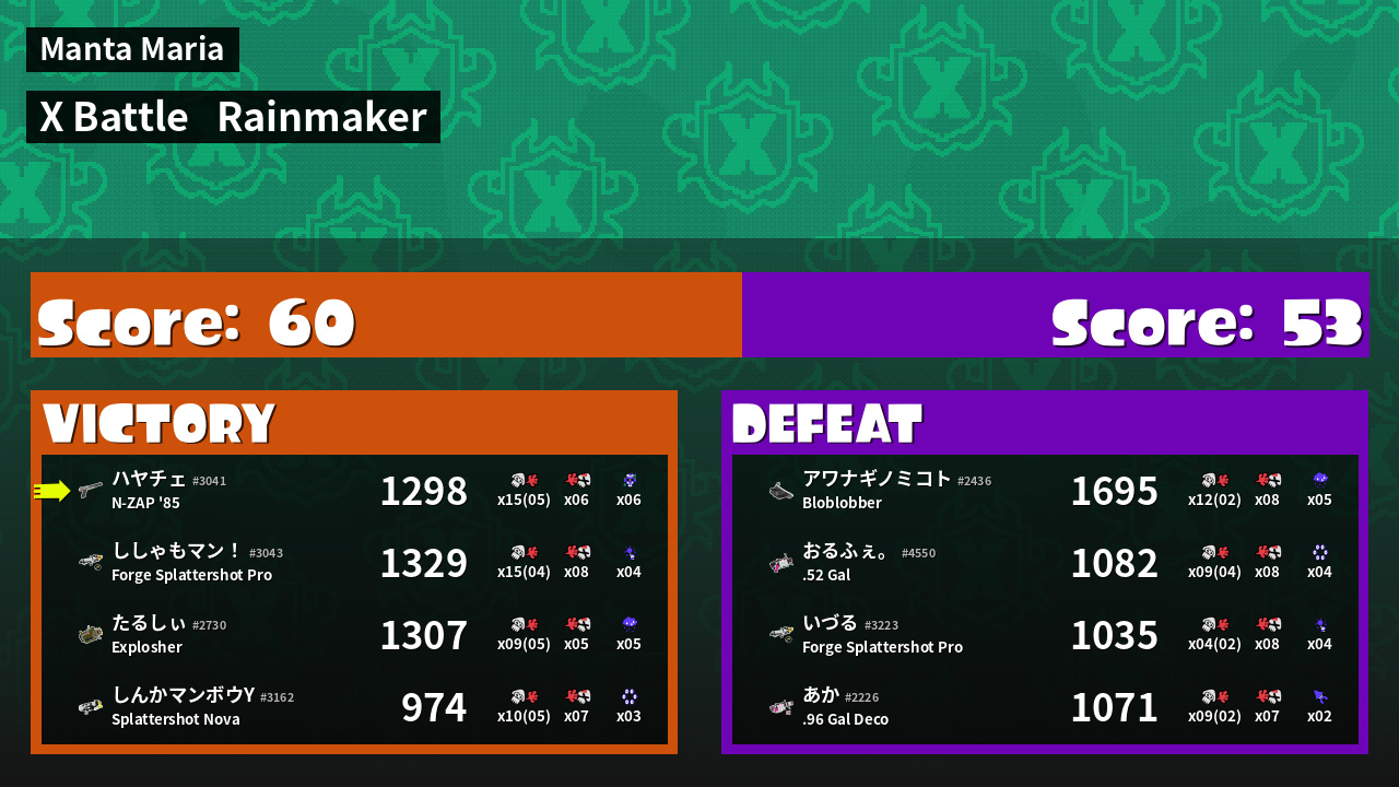 | Mode | Rainmaker - X Battle | ||