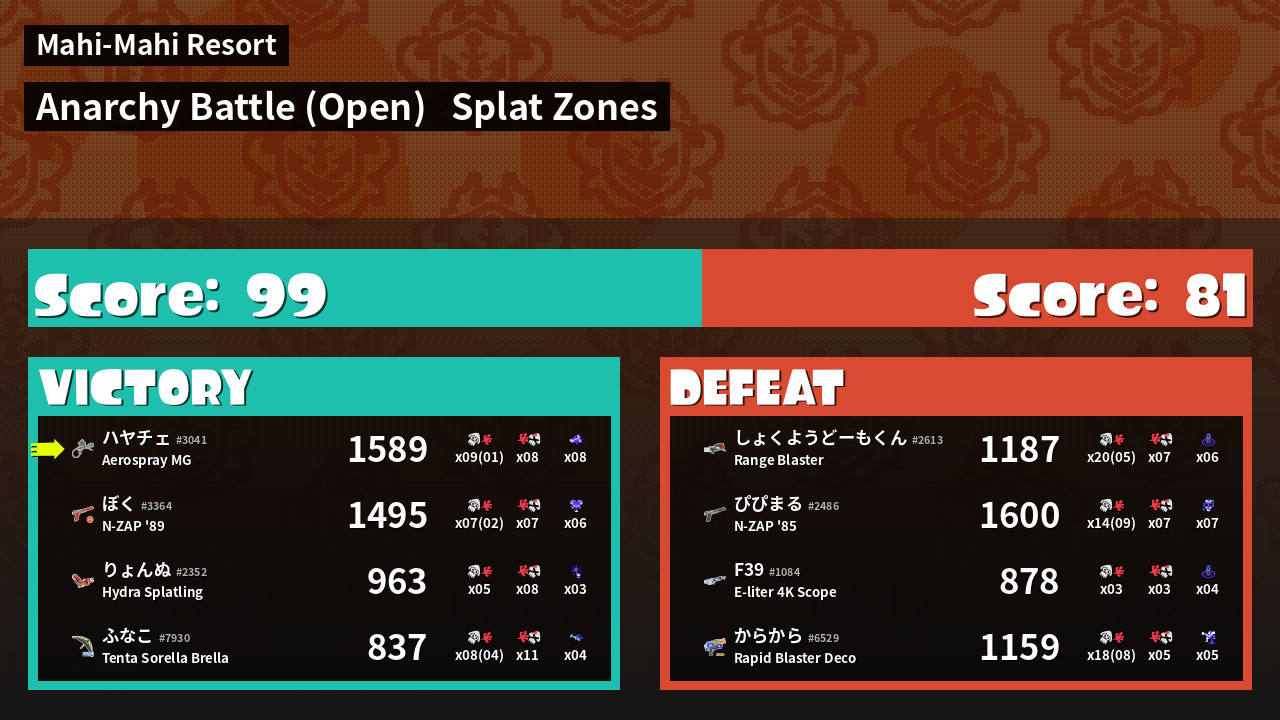 Kills / Deaths | 8 + 1 / 8 = Kill Ratio: 1.00 | ||