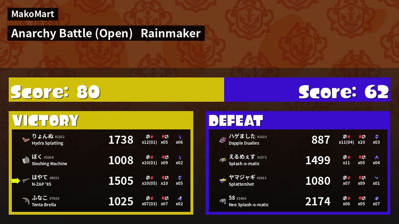 | Mode | Rainmaker - Anarchy Battle (Open) | ||