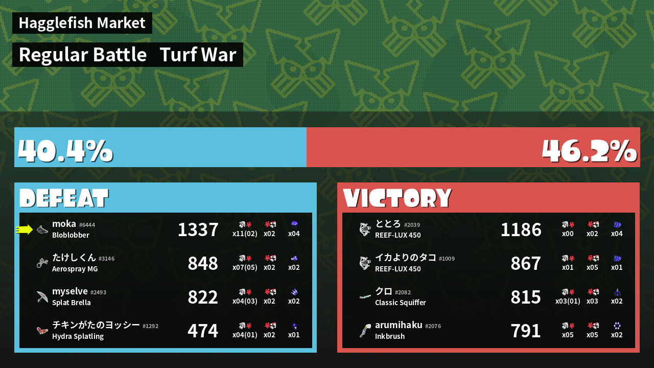 | Mode | Turf War - Regular Battle | ||