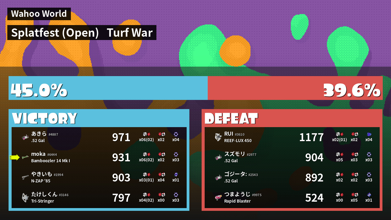 | Medals | #1 Overall Splatter #1 Home-Base Inker #1 Enemy Splatter | ||