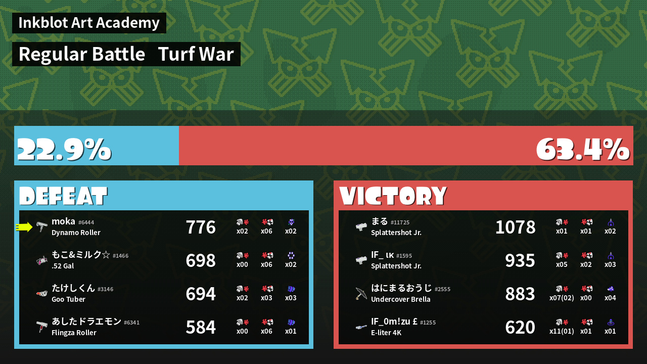 | Mode | Turf War - Regular Battle | ||