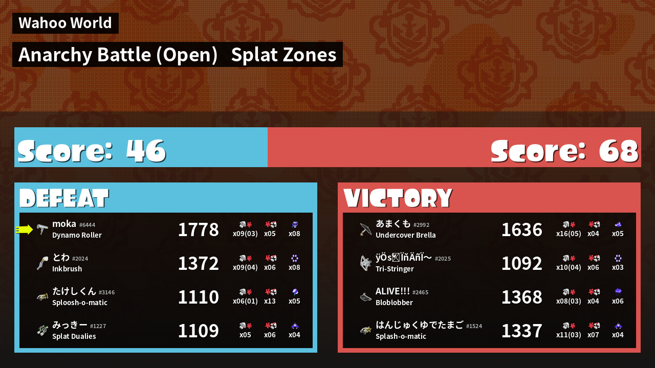 | Mode | Splat Zones - Anarchy Battle (Open) | ||