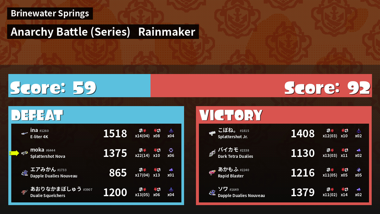 | Mode | Rainmaker - Anarchy Battle (Series) | ||