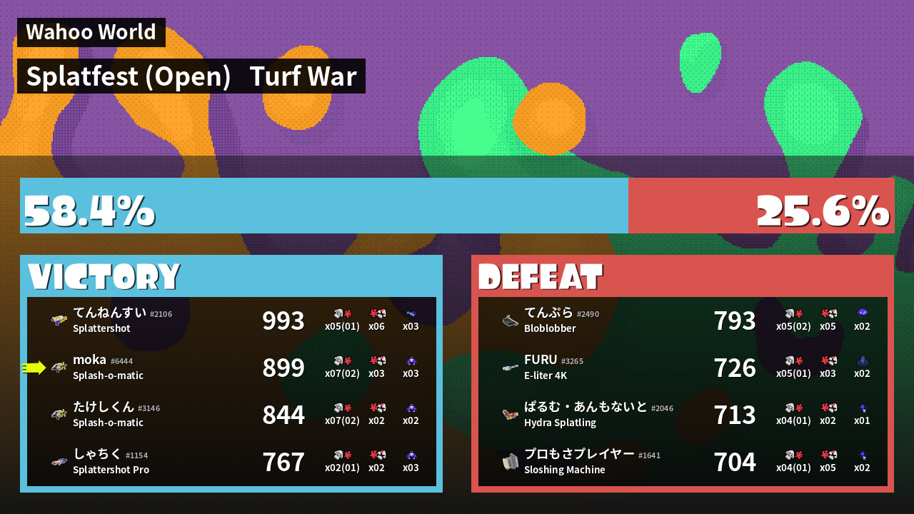 | Medals | #1 Overall Splatter #1 Enemy-Base Inker #1 Enemy Splatter | ||
