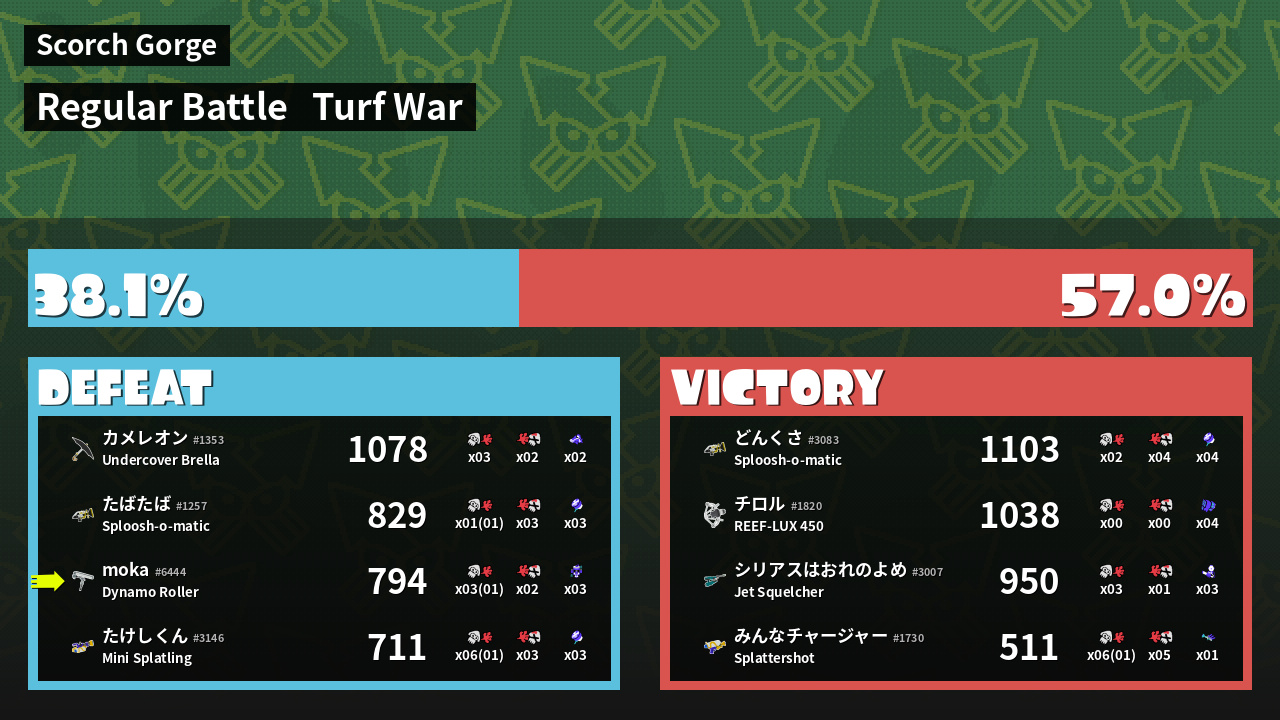 | Medals | #1 Splat Assister #1 Tacticooler User #2 Overall Splatter | ||