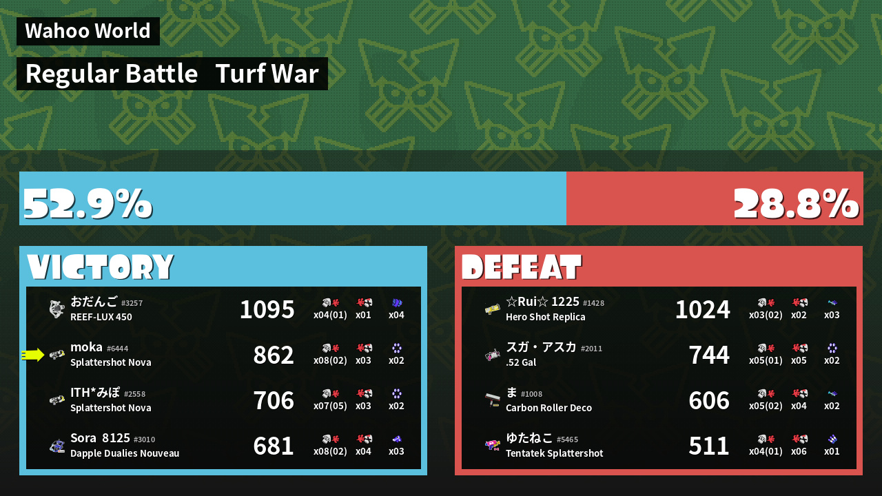 | Mode | Turf War - Regular Battle | ||