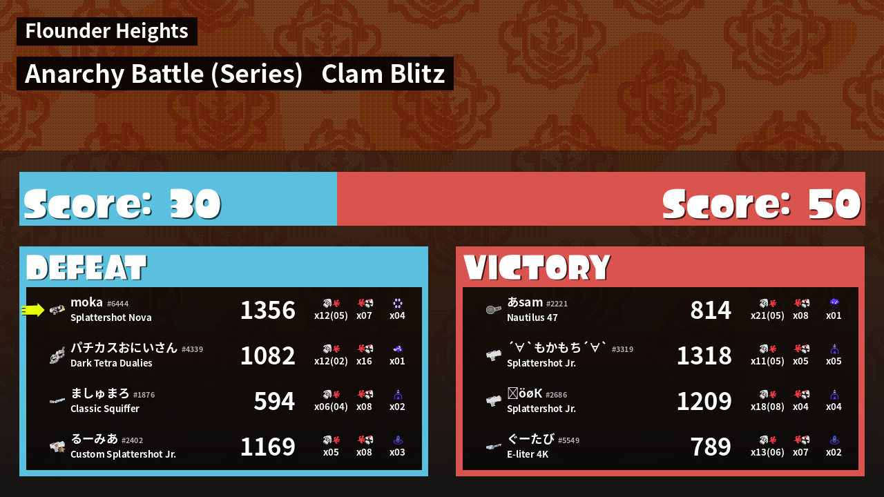 | Mode | Clam Blitz - Anarchy Battle (Series) | ||