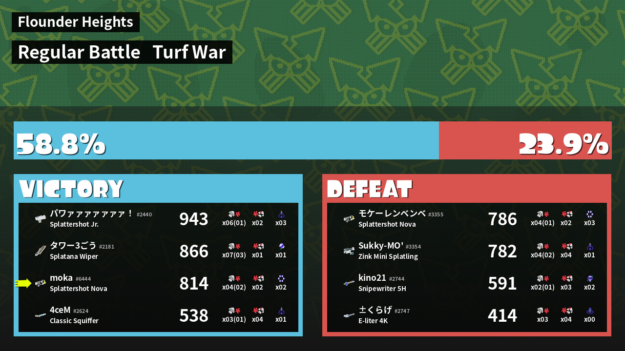 | Mode | Turf War - Regular Battle | ||