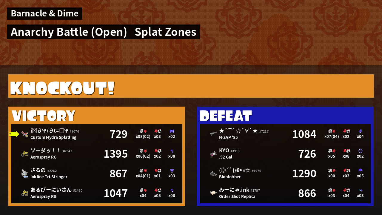 | Mode | Splat Zones - Anarchy Battle (Open) | ||