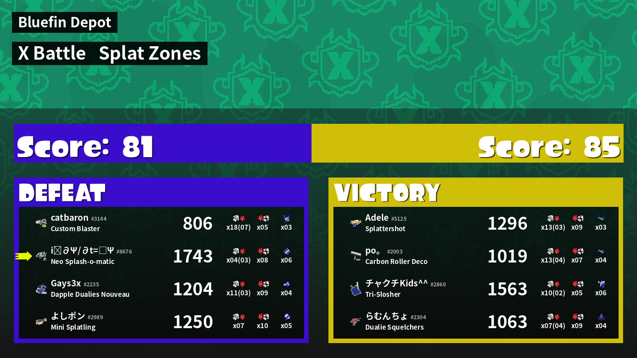 | Mode | Splat Zones - X Battle | ||
