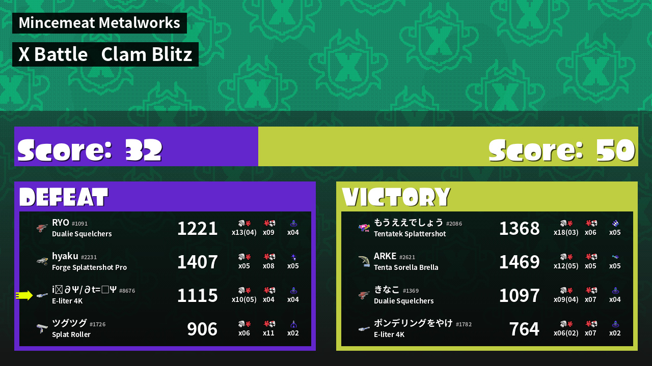 | Medals | #1 Splat Assister #1 Damage Taker #2 Overall Splatter | ||