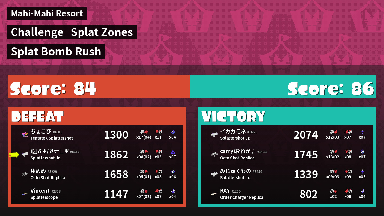 | Challenge | Splat Bomb Rush Let the Splat Bombs fly in this free-for-all! | ||